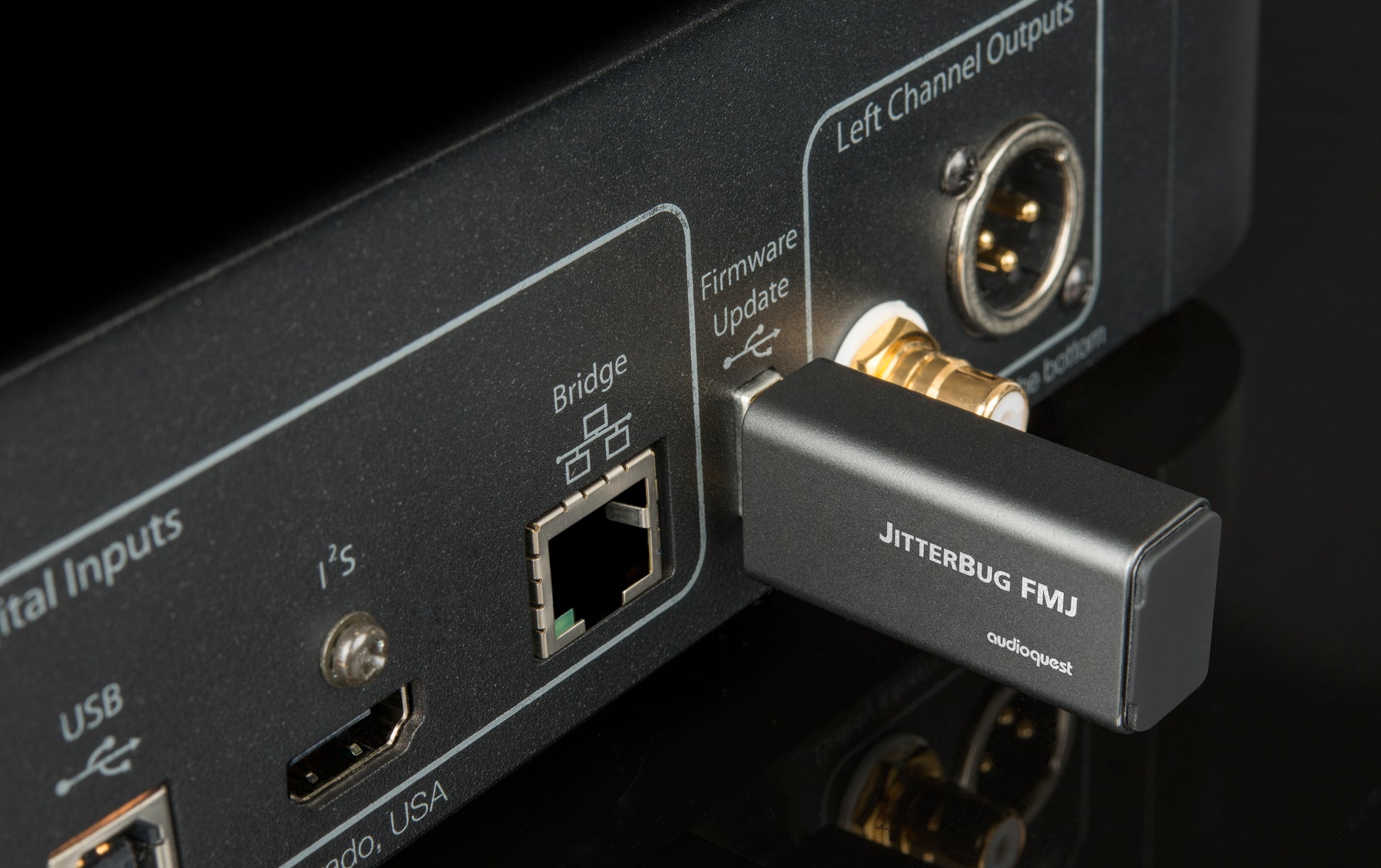 Employ one JitterBug in series between any computer, smartphone, NAS, streamer, or car audio system and a USB input. For an additional sonic improvement, use a second JitterBug in another unoccupied USB port—in parallel to the first—except with JitterBug FMJ’s front door closed.